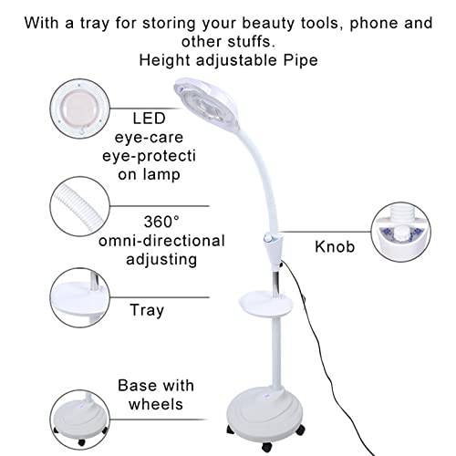 Lampada da Terra con Lente D'ingrandimento a LED Lampada da Terra Regolabile in Altezza Lampada da Terra con Lente D'ingrandimento 8x Lampada da Terra Rotante a 360 Gradi Per La Cura della(EU)