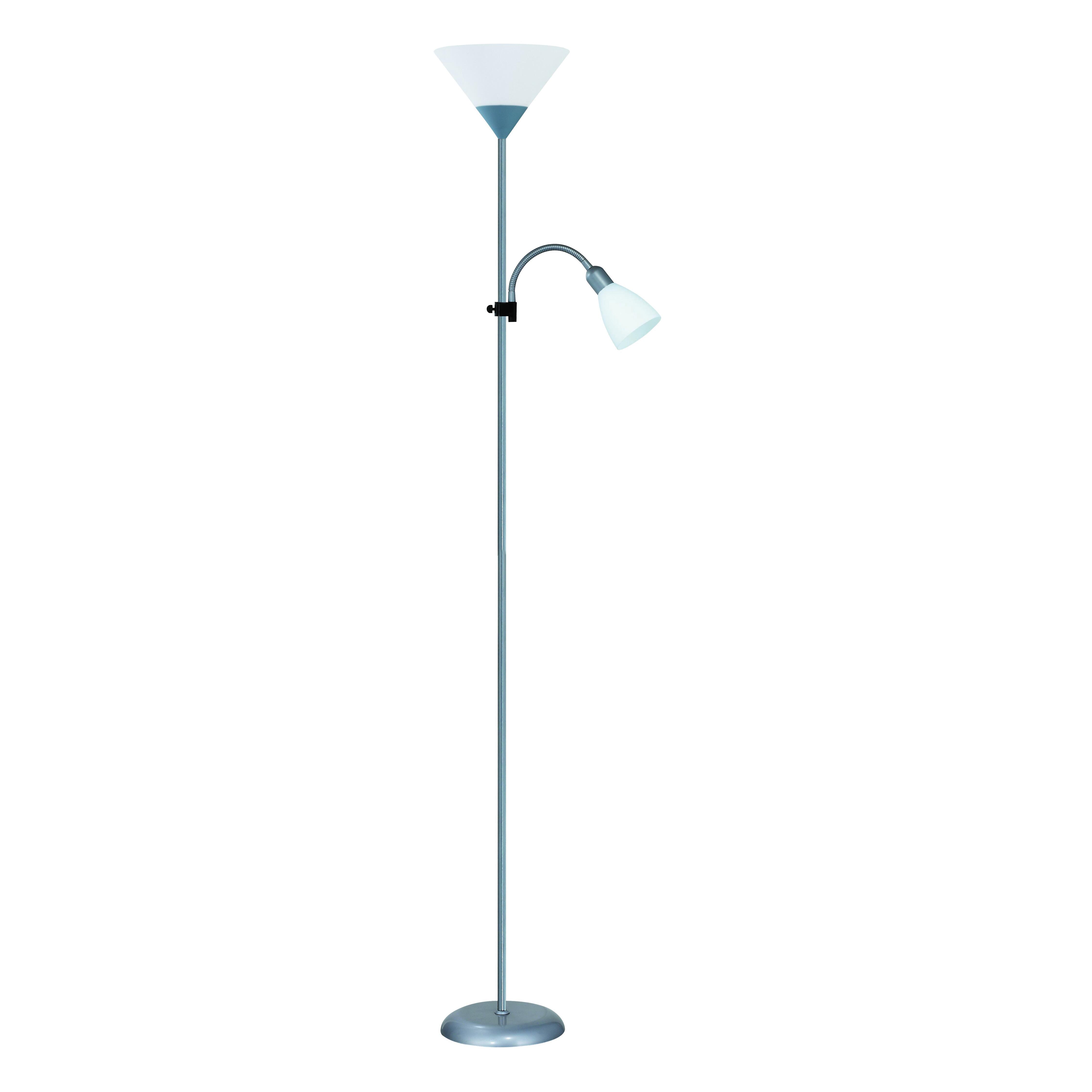 Struttura color grigio, diffusore in plastica colore bianco. 1 lampadina non inclusa, attacco lampadina E27 (grande), wattaggio massimo 60 W. Ideale per illuminare una zona di lettura. Indicata per una luce direzionale verso il basso e l'alto. Luce direzionale. Permette di valorizzare una zona della stanza. Grazie alla seconda lampadina puoi avere una migliore luce per i tuoi momenti dedicati alla lettura
