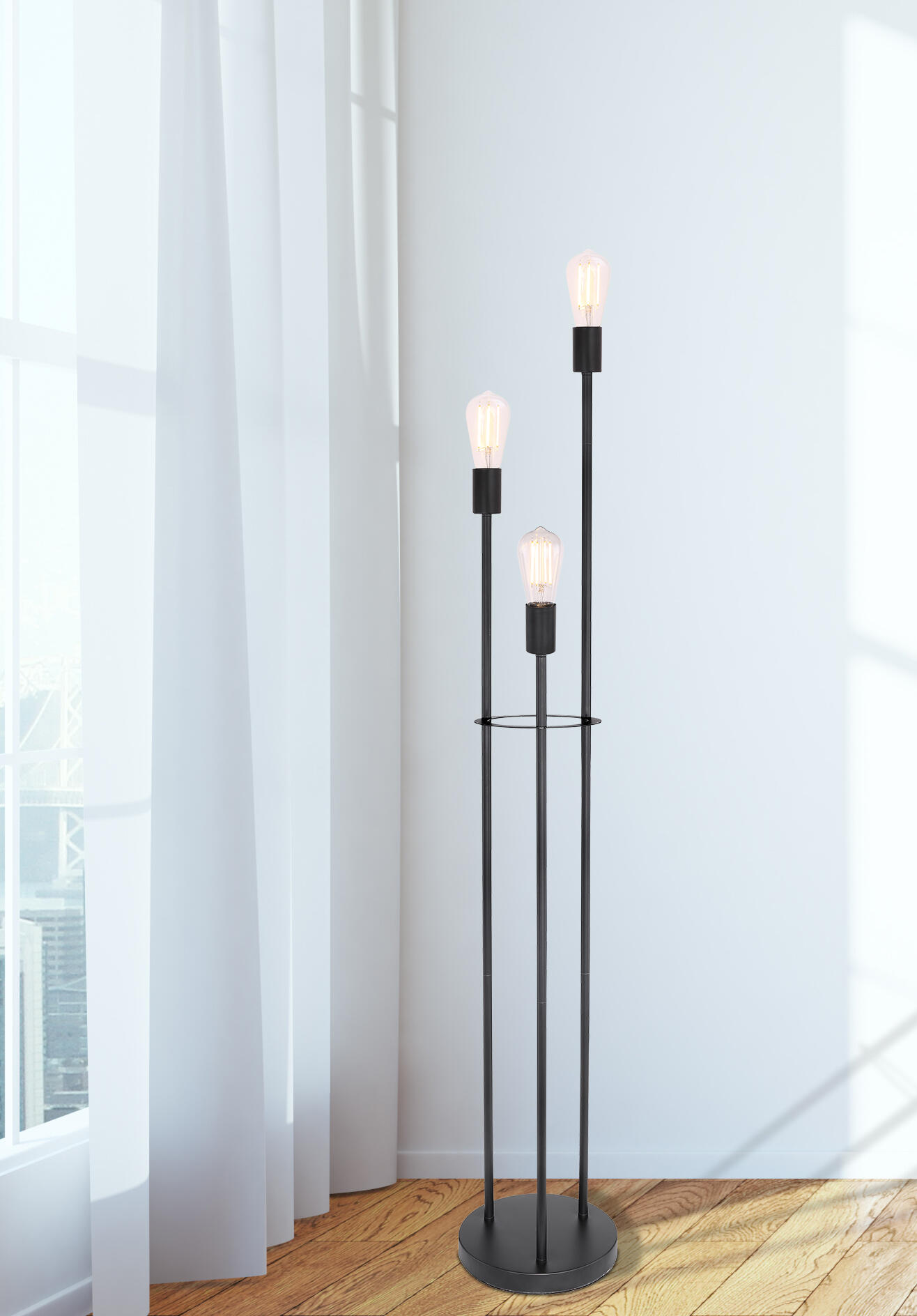 Lampada Terra Martha metallo nero con accensione su cavo di colore nero, lampadine non incluse