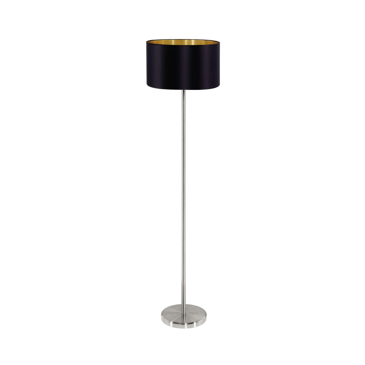 Struttura color nickel, diffusore in tessuto colore oro, nero. 1 lampadina non inclusa, attacco lampadina E27 (grande), wattaggio massimo 60 W. Ideale per illuminare un angolo della stanza.. Indicata per una luce direzionale verso il basso e l'alto