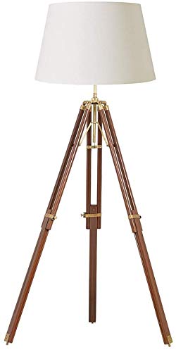 Lampada da terra moderna a treppiedi in legno per camera da letto di metà secolo, lampada da studio (senza ombra)