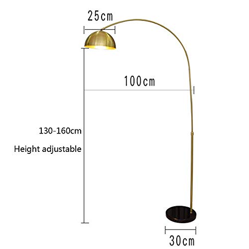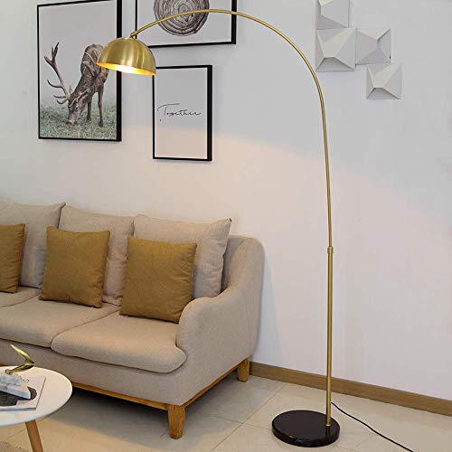 FWZJ Lampada da Terra ad Arco, Lampada da Terra in Ottone con Paralume Regolabile, Attacco E27, Luce Calda, Altezza Regolabile, Base in Marmo Stabile, Interruttore a Pedale, Lampada da Terra in m