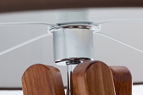 Lampada da terra, con paralume in tessuto di colore marrone crema e treppiede, struttura in vero legno di faggio, altezza 160 cm, realizzata a mano, design di alta qualità