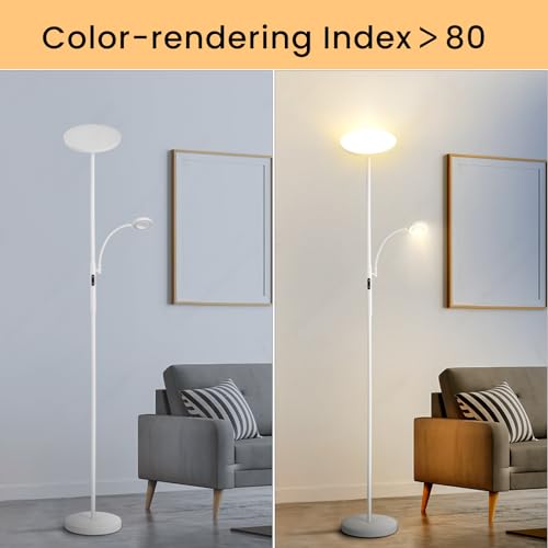 【Lampada da Terra 2 in 1 con Luce di Lettura】 Questa lampada da terra a LED ha due teste della lampada, l'illuminazione a LED può essere utilizzata per l'illuminazione quotidiana e la luce di lettura può essere utilizzata per leggere o lavorare. La luce principale e la luce di lettura possono essere controllate in modo indipendente e solo una o due luci possono essere accese contemporaneamente secondo necessità, il che è più conveniente e consente di risparmiare energia.