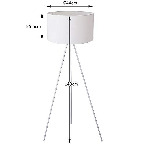 Lampada da Terra Piantana Base Treppiedi con Interruttore Luce Dimmerabile Design Moderno Paralume in Tessuto Attacco Lampadina E27 Max 60W Dimensione Dimensione: 145 x 45 cm (Bianco)