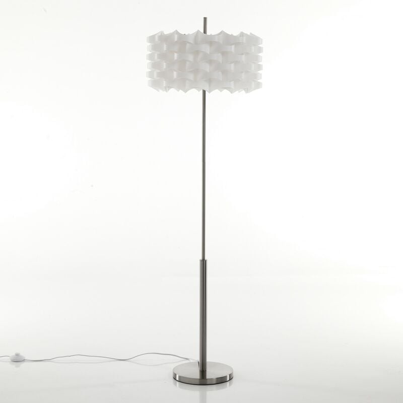 Lampada da terra HYDEN - paralume realizzato in polipropilene Bianco opaco - fusto realizzato in Acciaio satinato - dimensioni paralume cm H.25 x Ø.45 - dimensioni lampada cm H.145 x Ø.45 - predisposto per nr.3 lampadine E27 max 60W (non in dotazione)