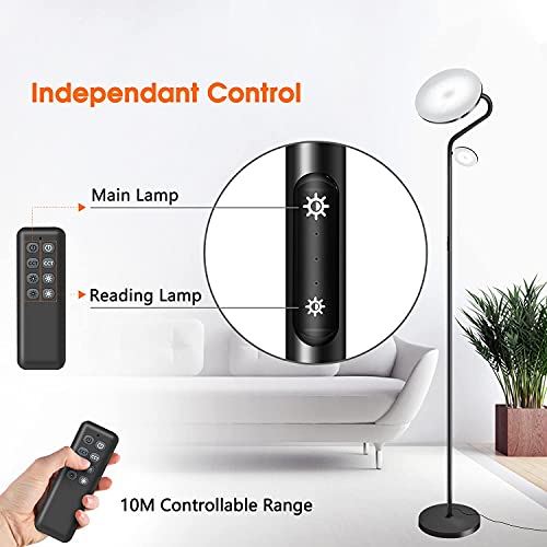Lampada da Terra Salotto, 27W + 7W Dimmerabile Lampada da Terra LED, 4 Temperature di Colore, Regolabili Altezza e Angolazione, Telecomando e Controllo Touch, per Soggiorno, Camera da letto