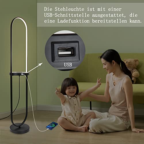ZMH LED Lampada da terra Salotto con Scaffale - Nero USB Lampada da Pavimento 3000K-6000K 3 Temperature di Colore Lampada a Stelo Moderno dimmerabile con Telecomando Piantana da Terra per Camera
