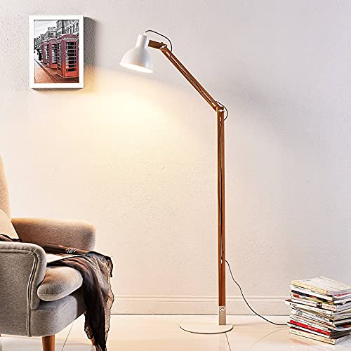 Lampada da terra 'Shivanja' (Moderno) colore Bianco, in Legno ad es. Studio & Ufficio (1 luce, E27) di Lindby | lampada da terra in legno