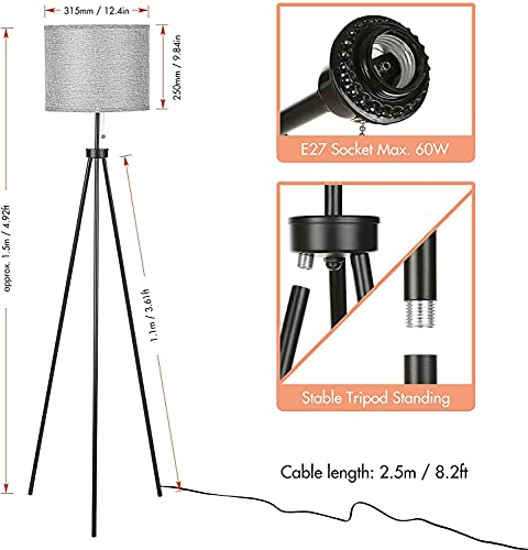 Lampada da Terra Staffa in Metallo 60W Max Supporta la Lampadina E27 Per Camera da Letto, Studio, Soggiorno, Comodino, Accanto al Divano (Senza lampadina)