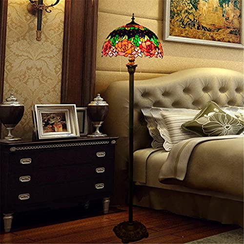 Lampada Da Terra In Stile Tiffany Da 16 Pollici, Alte Rose Colorate Lampada In Vetro Colorato, Sfumatura Di Fiori Di Cristallo, Illuminazione Di Lettura Antica Con Base In Resina, Camera Da Letto Lamp