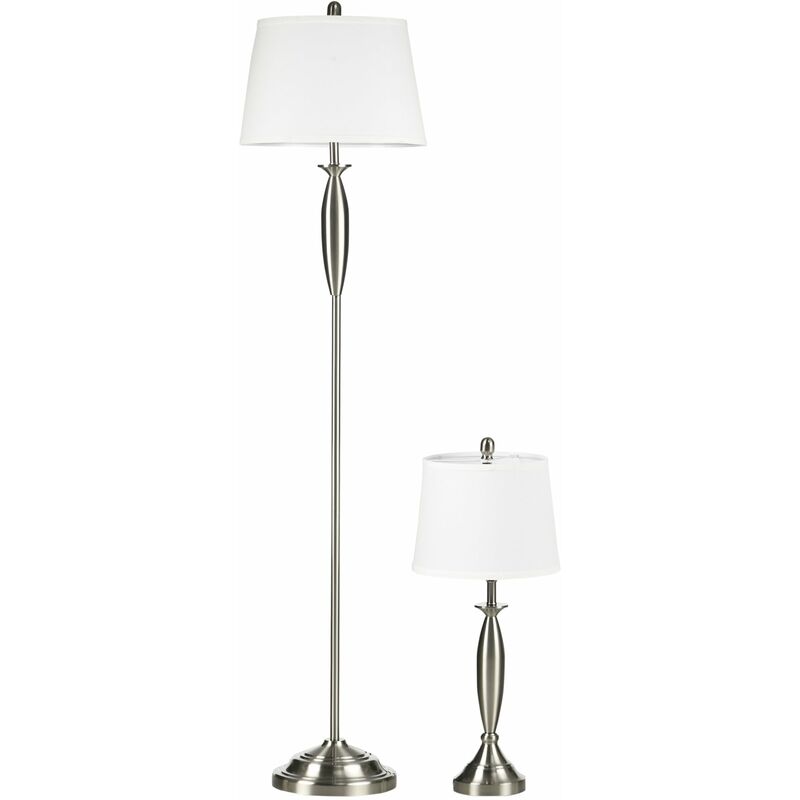 Lampade Set Lampada da Terra e Lampada da Tavolo 40W Attacco E27 in Acciaio e Tessuto Bianco e Argento Crea la perfetta illuminazione di interni con il set di lampade . Composto da una lampada a piantana e una lampada da scrivania abbinate, porta un tocco di eleganza in ogni spazio di casa. Il paralume in tessuto rende l'illuminazione calda e accogliente, mentre la base robusta riduce il rischio di caduta. Porta tutta la luce che ti serve in ogni stanza con questo set! SET DA 2: Questo set per l'illuminazione di casa è composto da una lampada da tavolo e una lampada da terra abbinate STILE CONTEMPORANEO: Il palo in acciaio con design arrotondato unito al paralume bianco donano un tocco elegante alla lampada da terra e da tavolo, per abbinarle senza problemi a ogni stile nella tua casa MATERIALE DI QUALITÀ: La base in acciaio è solida, così la lampada da tavolo e la lampada a piantana restano stabili e riducono il rischio di caduta. Il paralume in tessuto filtra la luce per creare