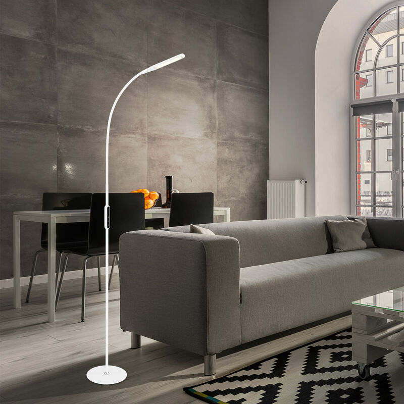 Descrizione Con questa lampada da terra a LED (71 cm x 22 cm) hai solo l'imbarazzo della scelta. È possibile utilizzare l'interruttore del colore della luce a tre livelli per scegliere tra cinque diversi colori della luce da 2700K a 5700K: questo consente di adattare la lampada da terra a diverse situazioni: ad es. B. atmosfera accogliente con luce bianca calda o lavoro concentrato con luce bianca universale. Con un dimmer tattile, i colori possono essere facilmente attenuati e anche fissati . Con un cavo lungo 2,3 m e un'altezza di 1,1 m, è molto flessibile e si armonizza con stili accoglienti e moderni e un ambiente architettonico. Rispetto alle luci normali, i faretti a LED consumano solo una quantità minima di elettricità e hanno un consumo persino inferiore rispetto alle luci a risparmio energetico. Questo protegge l'ambiente e il tuo portafoglio. È inclusa una sorgente luminosa a LED di alta qualità a risparmio energetico! Dettagli lampada • tipo di lampada: lampada da terra
