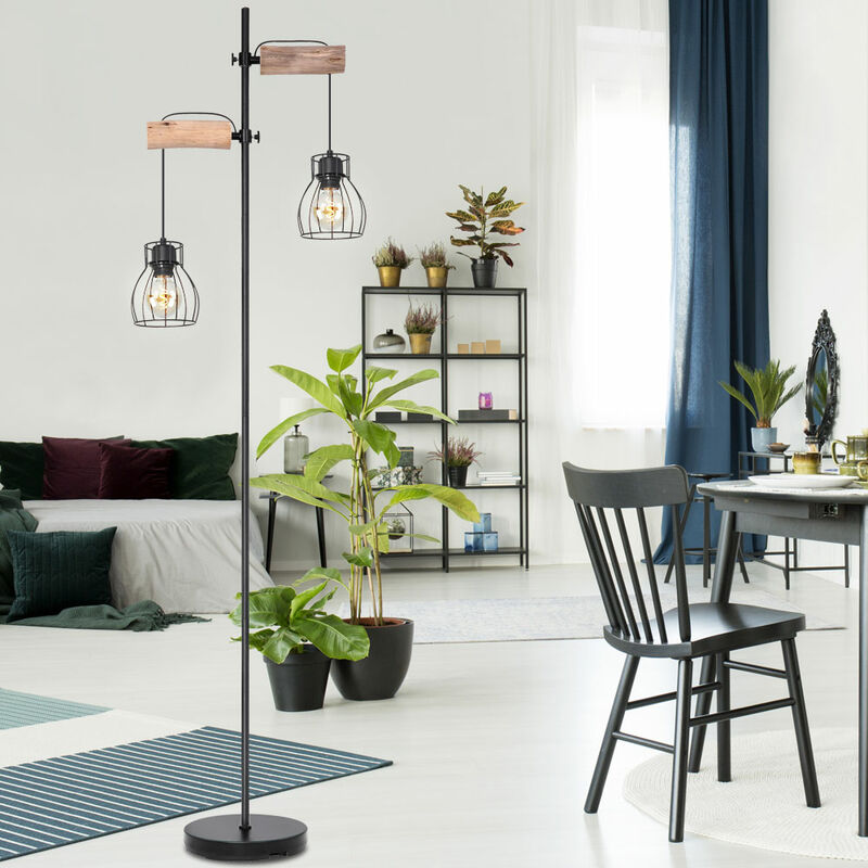 Descrizione La lampada da terra MINA a 2 lampade colpisce per il suo design semplice e poco appariscente. La lampada in metallo ha un interruttore di accensione e spegnimento. Questo modello può essere abbinato molto bene anche ad altri prodotti della stessa serie. Rispetto alle luci normali, i faretti a LED consumano solo una quantità minima di elettricità e sono persino al di sotto delle luci a risparmio energetico. Questo protegge l'ambiente e il tuo portafoglio. Due lampade LED di alta qualità a risparmio energetico sono incluse nella fornitura. Dettagli lampada • tipo di lampada: lampada da terra • materiale: metallo, legno • colore: nero, naturale• regolabile in altezza • Switch• lunghezza cavo in cm: 180 • lunghezza x larghezza x altezza inc m: 47 x 25 x 168 • attacchi: 2x E27 • Lampadine incluse: si • lampadine elettriche: 2x 6 Watt• flusso luminoso: 2x 720 lumen• colore luce: bianco caldo • Voltaggio: 230V, 50Hz dettagli lampada • Tipo di lampada: LED • Attacco: E27 • Forma