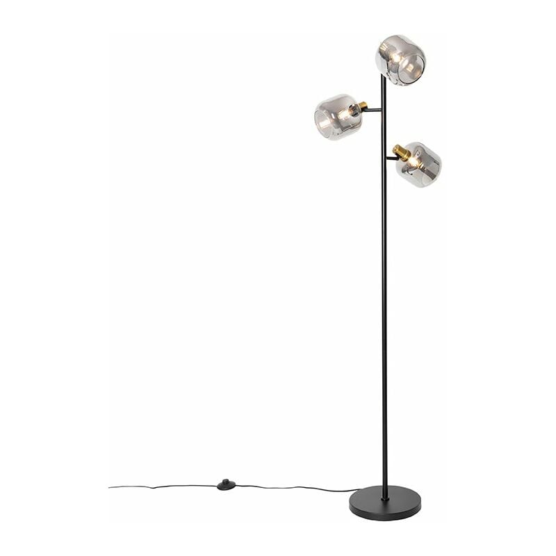 QAZQA Lampada da terra nera con oro con vetro fumé 3 luci - Zuzanna Ottieni un vero colpo d'occhio a casa con la nostra Zuzanna. Questa lampada da terra è splendidamente rifinita con un apparecchio nero e tre paralumi in vetro fumé che forniscono un piacevole effetto di luce nella stanza. Ha un'altezza di 160 cm e un diametro di 32 cm. Il piede ha un diametro di 25,5 cm e un'altezza di 2,5 cm. Completa questa lampada con tre sorgenti luminose E14, non dimenticare di ordinarle separatamente. Questa lampada è dimmerabile con un dimmer esterno, quindi puoi renderla più accogliente a casa la sera. Ottieni una lampada da terra moderna con la nostra Zuzanna. Portalampada: E14 . Max 3 x 25 W, 230 V Adatto a: LED Voltaggio: 220V/230V IP Classe di protezione: [IP20] A prova di polvere Funzioni extra: Regolabile: Dimmer escluso, Cavo e spina inclusi Lampadine exclusiva Il QAZQA Lampada da terra nera con oro con vetro fumé 3 luci - Zuzanna è Grigio. Gli spazi abitativi adatti per questa lampada