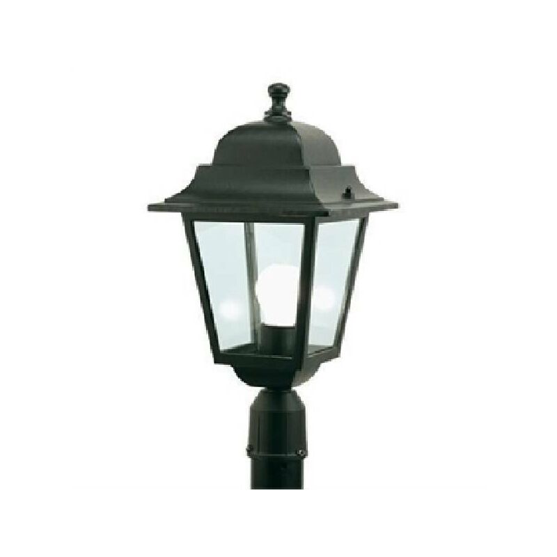 Struttura in pressofusione di alluminio. Trattamento anticorrosivo. Verniciatura a polveri epossidiche. Diffusori in vetro trasparente. Copri portalampada di alluminio in tinta. Portalampada E27 in porcellana. Accessori per il fissaggio inclusi. Adatta per lampade ad incandescenza. Adatta per lampade a risparmio energetico. Altezza max lampade mm 210. Alimentazione 230 V ~ 50 Hz. Dispositivo di connessione. Manicotto diametro 60 mm solo corpo lampada, palo venduto separatamente.