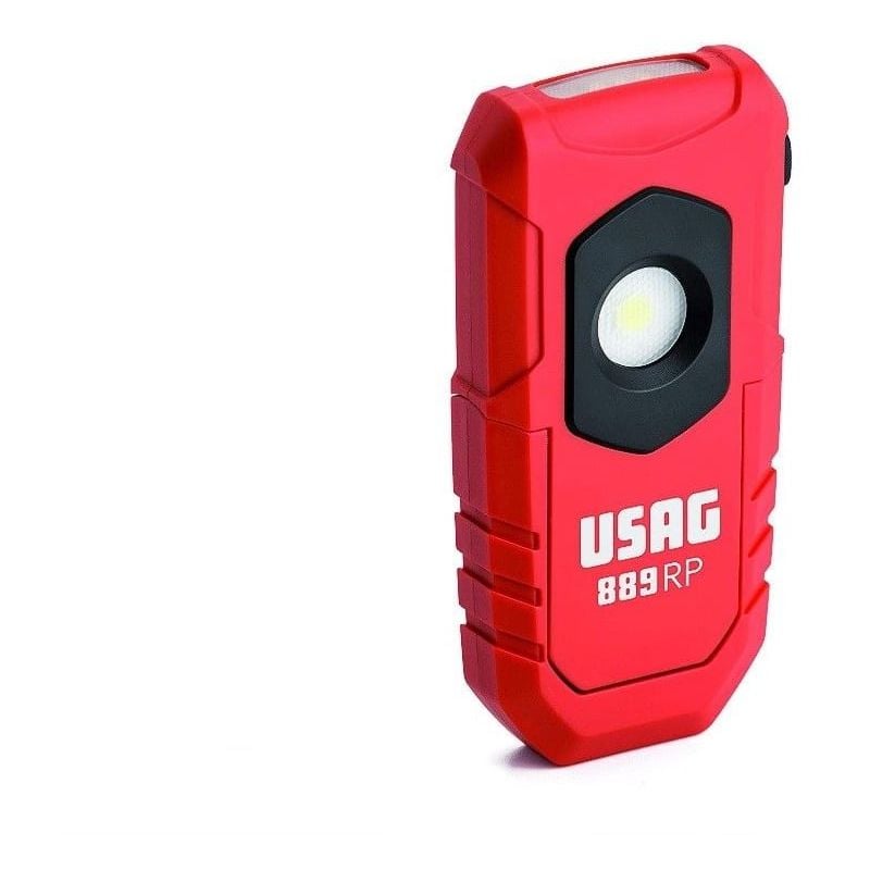 LAMPADA A LED RICARICABILE COMPATTA Doppio utilizzo: lampada di ispezione o torcia frontale Base magnetica regolabile in pi� posizioni fino a 180� Gancio retraibile e orientabile a 360� Clip di aggancio alla cintura Controllo dello stato di carica tramite spia luminosa sulla lampada (rosso: carica in corso, verde: ricarica completata) Fornito con caricabatteria da parete con uscita USB