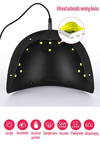 ♥ Set di lampade a LED / UV per asciugacapelli con 12 lampadine, hanno abbastanza potenza per asciugare rapidamente i gel per unghie e migliorare l'efficienza. Lunghezza d'onda di 320 ~ 400nm, non causa la mano nera, luce morbida per la protezione degli occhi, nessun riflesso.