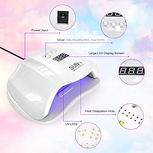 Lampada Unghie UV LED da 48W / 54W per Manicure/Pedicure con Automatico Sensore, 4 Timer Preimpostati (10s, 30s, 60s, 90s), Display LCD, 36 Perle, SUNX Professionale Asciuga Smalto per Gel Unghie