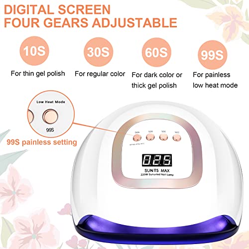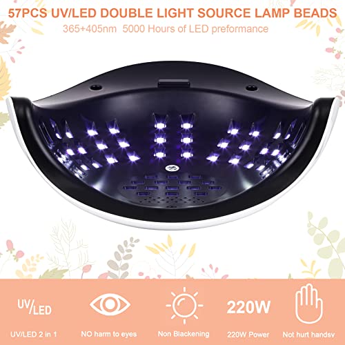 220W Lampada Unghie LED UV Professionale Fornetto per Manicure/Pedicure 4 Timer 10s/30s/60s/99s Display LCD Permanente Smalto Semipermanente Automatico Sensore Piastra Rimovibile per Gel Nail Polish