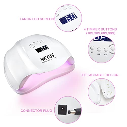 facile da usare. Inoltre con l'impostazione del timer di 10s / 30s / 60s/ 99s 4 per controllare il tempo di polimerizzazione per ogni strato, l' 99s LOW HEAT MODE per gel duri e Double Power Button (premere a lungo il pulsante "Double Power" per passare da 48W e 54W) a accelerare due volte più veloce della modalità standard