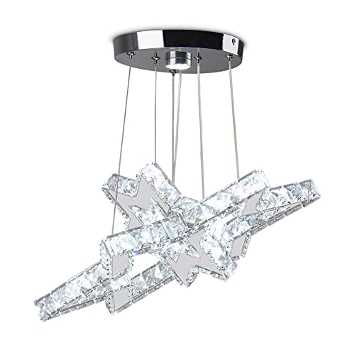 Lampadari di cristallo 2 anelli di stelle plafoniera moderna illuminazione a sospensione a LED lampada regolabile in acciaio inossidabile per camera da letto soggiorno sala da pranzo (bianco freddo)