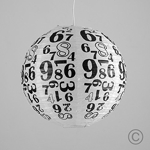 Set di 2 lampadari a forma di palloncini cinesi, in carta bianca decorata con numeri in nero, 30 cm, cavi elettrici non compresi