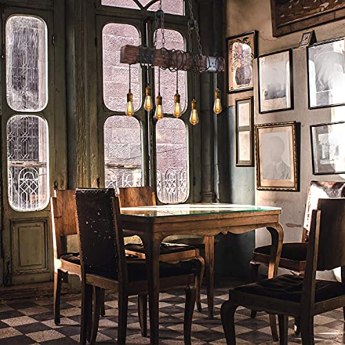 Design: Lampada a sospensione molto rustica, è anche totalmente elegante grazie al suo aspetto retrò, la nero lampada a soffitto da camera da letto a sei lampade è composta da una trave di legno sospesa su due catene a cui sono attaccate sei lampade E27 con cavi. I cavi possono anche essere avvolti più volte attorno alla trave per creare spazio sufficiente per composizioni decorative di diverse altezze.