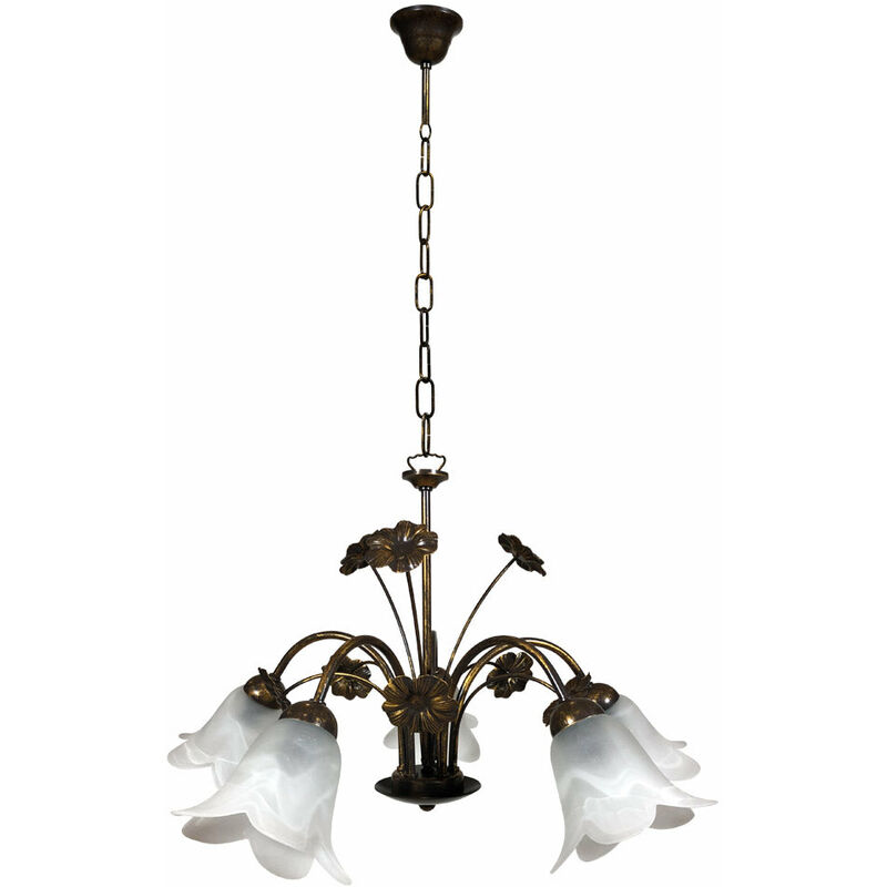 Lampadario Lampadario 5xE14 Montatura Marrone Oro Vetro Alabastro Bianco E-Energy Vera Potenza Max: 5X46W HSGS Attacco: E14 Alimentazione: 220/240V ~ 50Hz Dimensioni: Ø64-H.33-L.100 cm Lampadine non incluse Prodotto Made in Italy Articolo: VERA/5 MR