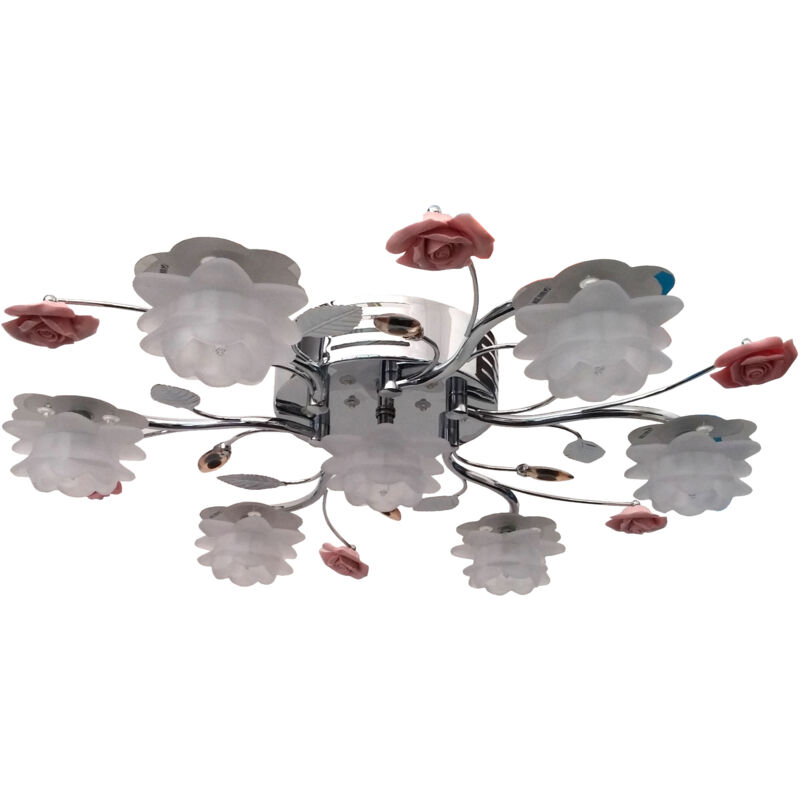 Lampadario LED alogena plafoniera fiori telecomando luce lampada 20W G9 Lampadario a soffitto con led integrati e lempade alogene g9(sostituibili) per illuminazione generale. La base del lampadario è in lega metallica mentre tutti i pendenti sono in vetro. Grazie al pratico telecomando in dotazione potrete gestire le funzioni del lampadario. Potrete decidere se accendere i led per un illuminazione soffusa/notturna o le lampade alogene per un illuminazione generale. Il telecomando gestisce la lampada led permettendo di accendere: solo i led, solo le lampade alogene, lempade alogene + led, spegnere tutto. Il lampadario dispone di 7 attacchi g9 per alogene da massimo 20w l'una. Le lampade sono incluse in confezione. Caratteristiche tecniche: Lampadario alogeno + led Lampade alogene sostituibili 7 alogene da 20w Accensione/spegnimento tramite telecomando wireless Telecomando RF a 4 tasti Led bianco freddo Alimenatzione: 220v La confezione contiene: Nr.1 Lampadario Nr.7 Lampada alogena 20w