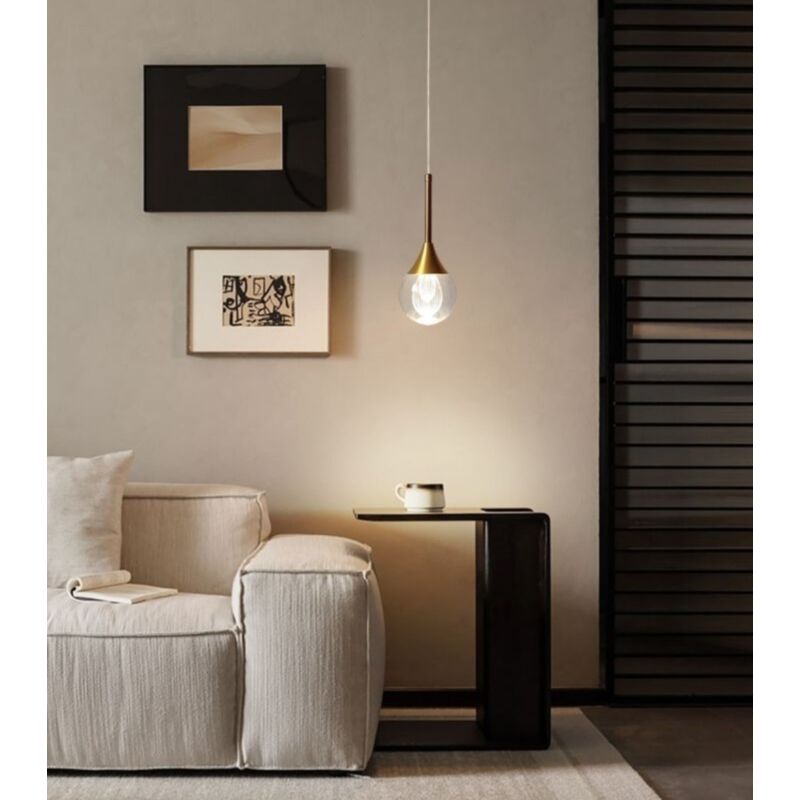 Una soluzione elegante e moderna ai normali applique da parete, per illuminare delicatamente i comodini della camera da letto o dare un tocco di luce a isole, banchi e vetrine. Struttura in alluminio e metallo dorato con sfera in acrilico. Versatile e compatto è ideale per qualsiasi ambiente, particolarmente per camera da letto, soggiorno e isole. Installazione facile e veloce, poiché non necessita di montaggio. Caratteristiche tecniche Potenza 5W Flusso luminoso 400lm Fascio luminoso 60° Colore corpo Bianco Voltaggio AC220-240V Frequenza 50/60Hz Dimmerabile No Uso Interno Luce disponibile 6500K bianca - 4000k naturale - 3000k calda Materiale Alluminio + Metallo + Acrilico Dimensioni Diametro sfera 93 mm Diametro base al soffitto 80 mm Lunghezza cavo 1650 mm (regolabile) Altezza lampada 250 mm Tipologia: A sospensione