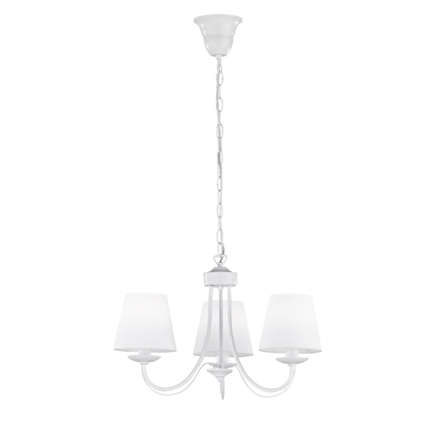 Il lampadario in metallo bianco Cortez con i bei paralumi in tessuto bianco opaco si integra perfettamente con ogni stile d'arredo, da quelli classici a quelli moderni aggiungendo un tocco luminoso dal fascino senza tempo. Il lampadario ha un diametro di 47 cm e una lunghezza di sospensione di 150 cm. I tre punti luce hanno un attacco E14 e possono essere dotate di lampadine a LED o alogene con una potenza massima di 28 watt.