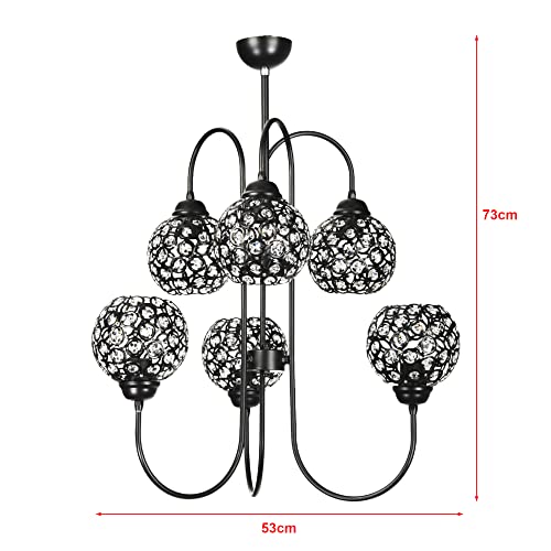 Lux.pro Lampadario a 6 Bracci Paralumi a Sfere in Metallo con Cristalli Artificiali Lampada da Soffitto - Nero