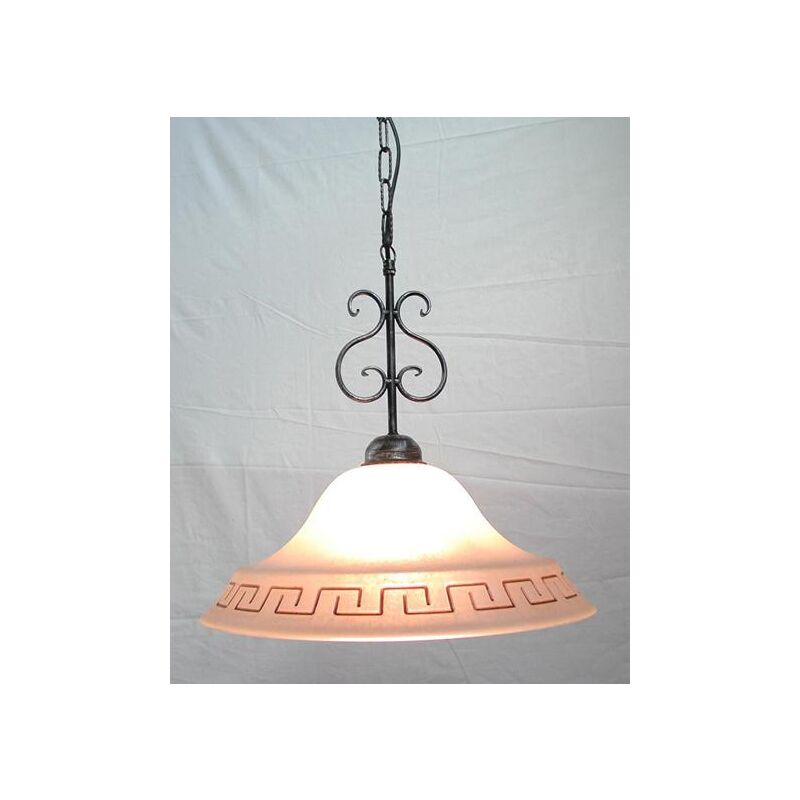 LAMPADARIO A CATENA SOSPENSIONE ATENA LAPADE APPLIQUE LAMPIONE LANTERNE Lampadario ad una luce realizzata in ferro battuto forgiato. Colore è nero argento Nell'offerta è compreso il paralume in vetro. Attacco della lampadine è E27 e supporta una lampadina fino a 60W. Diametro cm. 30