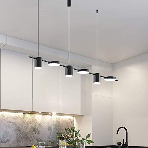 Lampadario LED Ciondolo Luce Tavolo Da Pranzo Cucina Loft Lampada Luci Sospese Moderno Camera Da Letto Soggiorno Lampada Paralume Acrilico Illuminazione in Metallo 3000K Lampade,Nero,6Heads