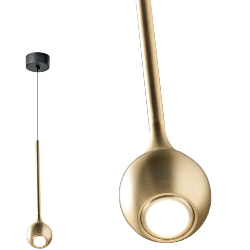 URSULA SP è una lampada che rappresenta gocce di luce in sospensione, impressiona soprattutto con la sua forma stretta. La lampada a sospensione funziona con LED caldi che irradiano la loro luce verso il basso e forniscono una luce piacevole. L'apparecchio può essere montato sopra un bancone, dove fa sempre una bella figura come solitario o in una fila con apparecchi simili. Grazie alla tecnologia LED, il consumo di energia rimane a un livello basso, ma la luminosità è buona. Lampadario classica Gea Luce URSULA SP O LED Sospensione in alluminio ORO spazzolato con modulo led Struttura in alluminio ORO spazzolato e rosone NERO satinato. Categoria: Lampade a sospensione. Completa di un modulo LED integrato da 5W, a 260 lm (unità di misura del flusso luminoso) e temperatura calda a 3000°K. NON DIMMERABILE Questo apparecchio a sospensione URSULA SP cattura lo sguardo anche quando è spento grazie al suo design minimalista ed è la scelta ideale per un ambiente abitativo classico o moderno.