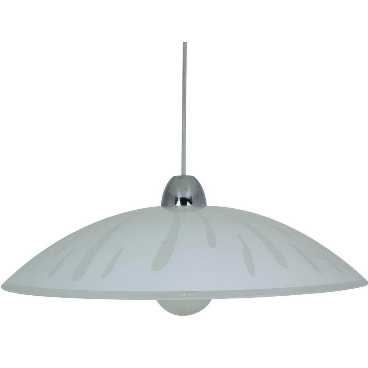 Sospensione Cometa D500 H1100 Vetro Rotondo Serigrafato Bianco e Granigliato Lucido estrerno Cavo in silicone trasparente con particolari cromati 1 PTL E27 MAX 60W. Disponibilità pezzi di ricambio