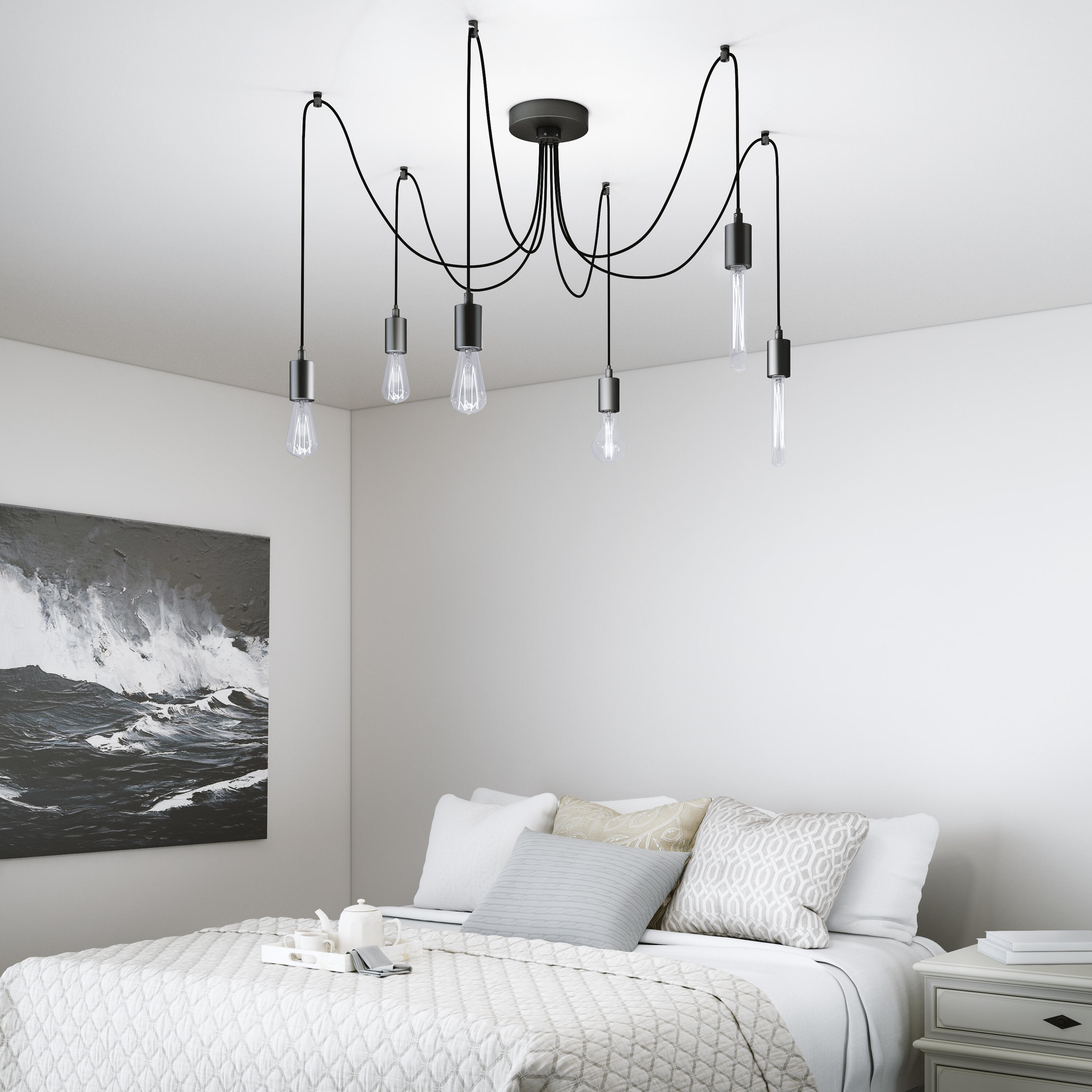 Pendente multi Easly 6xE27. Potenza massima per luce 60W. Materiale ferro. Colore nero opaco.