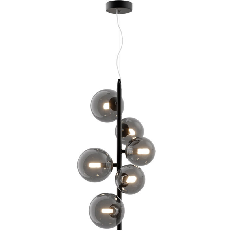 Collezione Dallas ILLUMINA IL PRESENTE CON IL DESIGN CONTEMPORANEO Lampadario contemporaneo Dallas con struttura in metallo nero e 6 luci, dotato di diffusori in vetro soffiato specchiato.. Il design ispirato alla struttura molecolare conferisce a questo lampadario un aspetto moderno ed elegante. La lunghezza dei cavi delle lampade a sospensione è regolabile, permettendo di personalizzare l'altezza del lampadario in base alle proprie esigenze. La sorgente luminosa utilizzata è una lampadina con attacco G9, che assicura un'illuminazione uniforme e diffusa. Questo lampadario è perfetto per illuminare grandi ambienti, come soggiorni, sale conferenze e uffici.