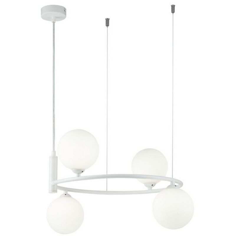 Collezione Ring LUCE E DESIGN IN PERFETTA ARMONIA Lampadario contemporaneo serie Ring con struttura arrotondata in metallo colore bianco, 4 luci con diffusori bianchi a forma di sfere in vetro soffiato.. È una lampada da soffitto dal design elegante e raffinato, che arreda con stile e personalità. I diffusori diffondono una luce morbida e avvolgente. L'altezza è regolabile, permettendo di adattare il lampadario alle proprie esigenze e preferenze. Il lampadario Ring è ideale per chi cerca una lampada da soffitto dal design moderno e ricercato, capace di creare un'atmosfera sofisticata e luminosa.