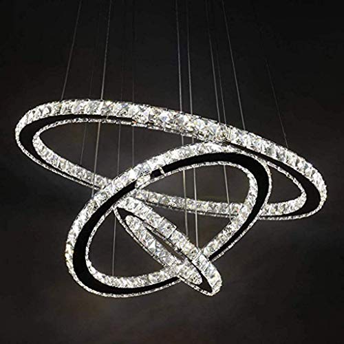 Lampadario in Cristallo a 3 Anelli da Soffito a Sospensione 100W Lampadario LED in Vetro Design Elegante Moderno Montaggio in Diverse Composizioni Luce LED (Bianco Freddo)