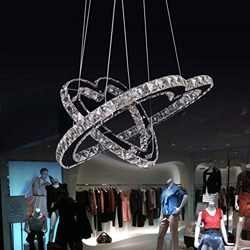 Lampadario a LED Cristallo Luce Pendente Romantica a forma di Cuore, 2 anello Camera da letto Soggiorno Sala da pranzo Lampada a sospensione, Dimmerabile tramite telecomando, 40+60cm 72W 4320lm