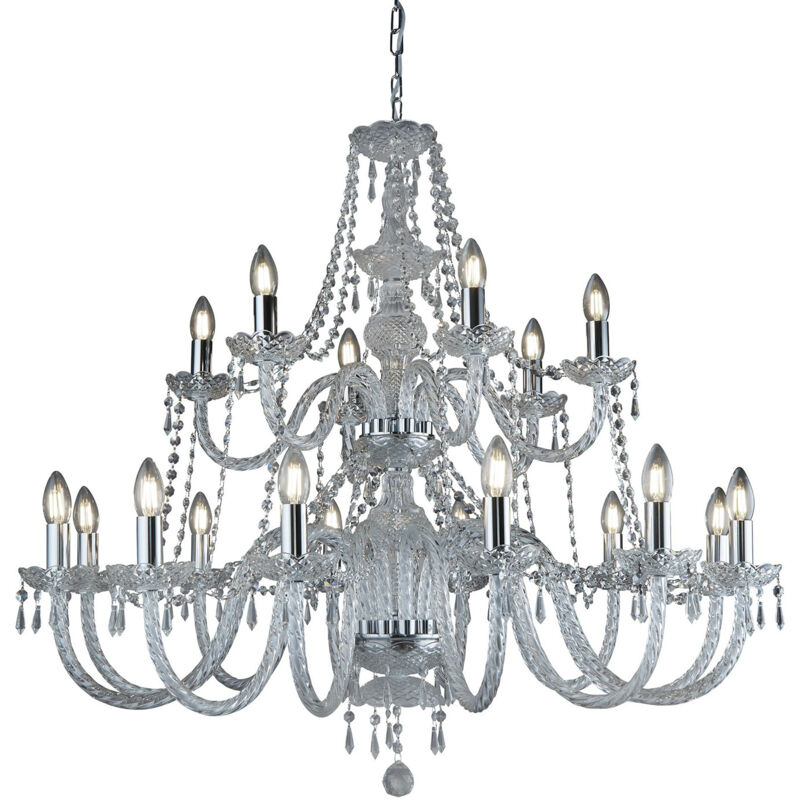 Searchlight Hale - Lampadario in cristallo a 18 luci con finitura cromata, attacco E14 | Finitura: Chrome | Materiale: cristallo | Classificazione IP: IP20 | Altezza (cm): 96 | Diametro (cm): 100 | Numero di luci: 18 | Tipo di lampada: E14 | Dimmerabile: Sì | Potenza (max): 60 | Peso (kg): 12 | Classe: 1 (a terra) | Lampadina inclusa: no