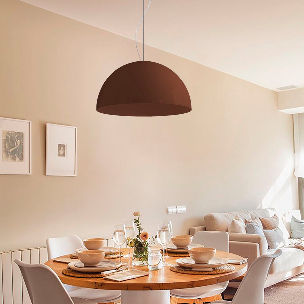 Sospensione in metallo caratterizzata da un design moderno che diffonde gradevolmente la luce. Verniciata in colore corten. Adatta a qualsiasi ambientazione moderna/classica. Disponibile nella versione 40 centimetri (1xE27) e 60 centimetri (1x E27).. Ideale come luce diffusa per una stanza di dimensione 20-25 mq. Consigliato per zona giorno e zona notte. Prodotto 100% Made in Italy. Disponibilità ricambi garantita per 7 anni. Riparabilità garantita al 100% in ottemperanza ai principi di economia circolare