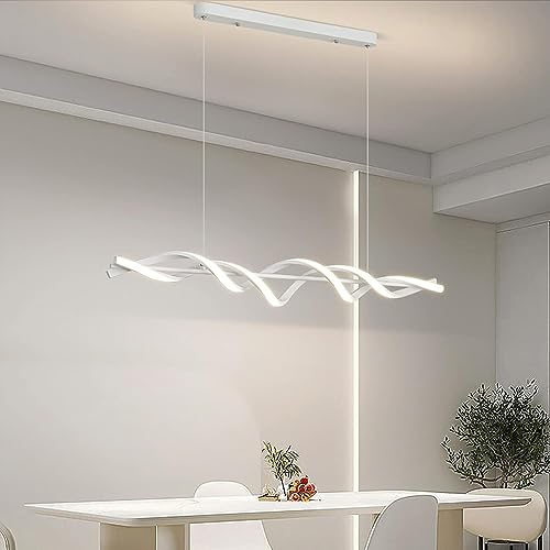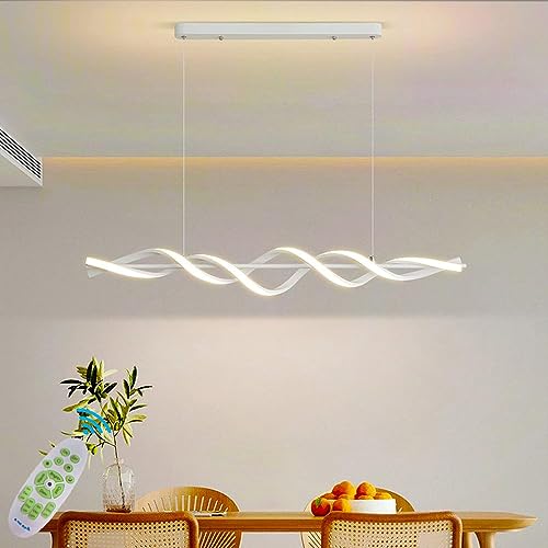 Lampadario LED Dimmerabile Con Telecomando L100CM Lampada a Sospensione Soggiorno Moderna Bianca Designer Lampada a Sospensione per tavolo da pranzo Cucina Ufficio Regolabile Altezza Lampadari
