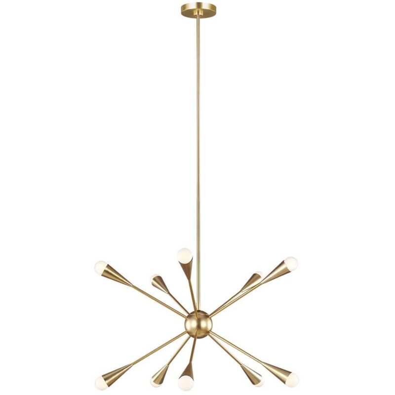 Collezione Jax FASCINO CELESTIALE Lampadario a 10 luci - Ottone brunito. Jax trasmette il fascino celestiale della silhouette di un'esplosione di stelle, celebrando il suo status di icona del design classico dell'Art Déco. Tre opzioni di finitura, tra cui ottone brunito, nichel lucido e una splendida combinazione bicolore nero notte/ottone brunito, rendono l'immagine moderna e rinfrescante.