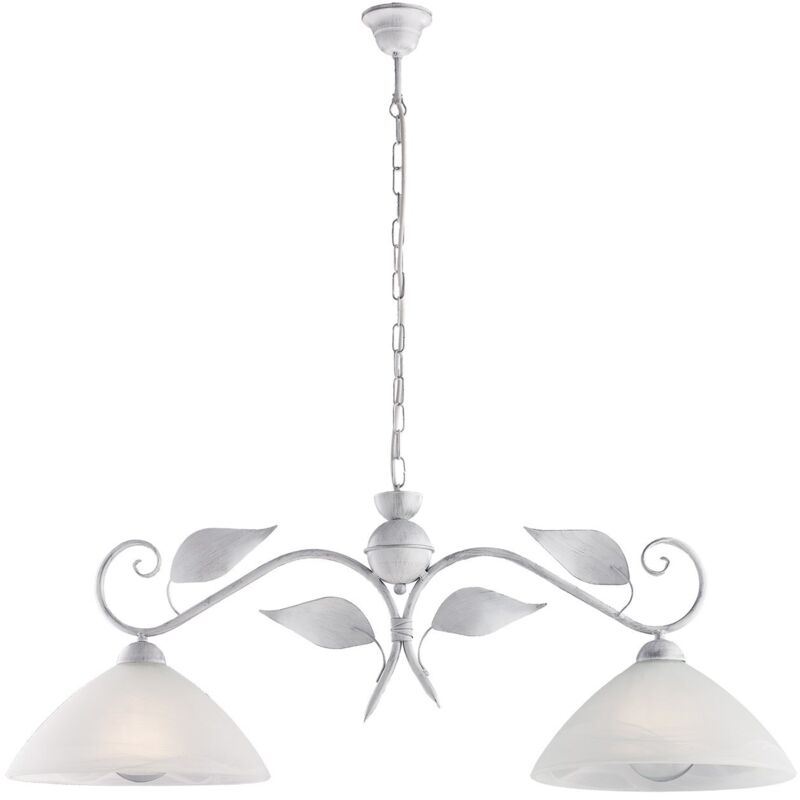 Lampadario in ferro laccato bianco con decorazione argento antico e diffusori in vetro diametro 30 alabastro bianchi 2 luci