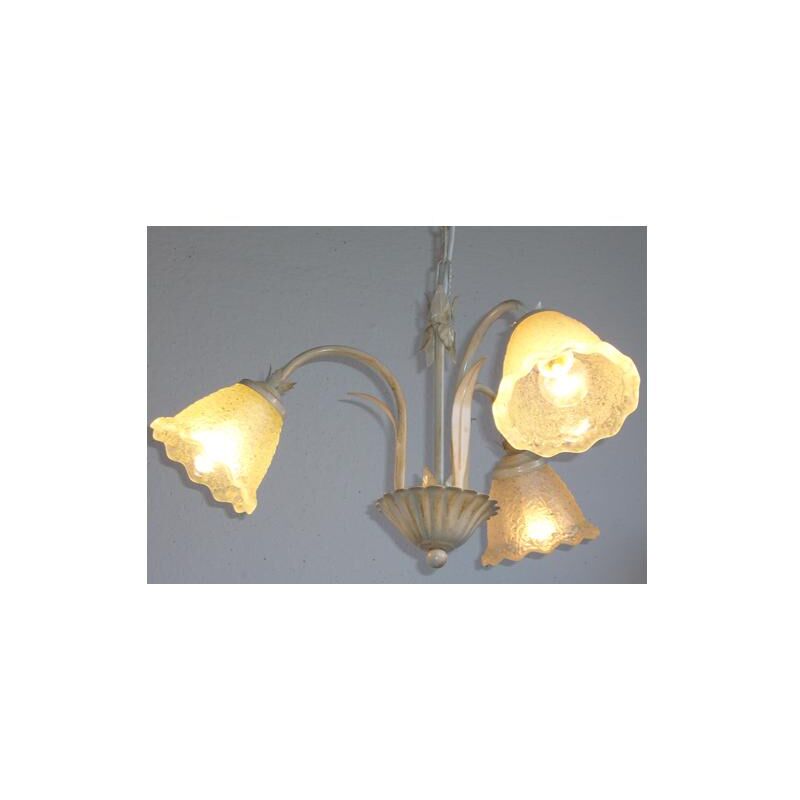 LAMPADARIO GHIAIA 3 LUCI FERRO BATTUTO LAMPADE LAMPIONE APPLIQUE LANTERNA Bellissimo lampadario in ferro battuto di colore Avorio Oro attacco luci E14 3x40 watt
