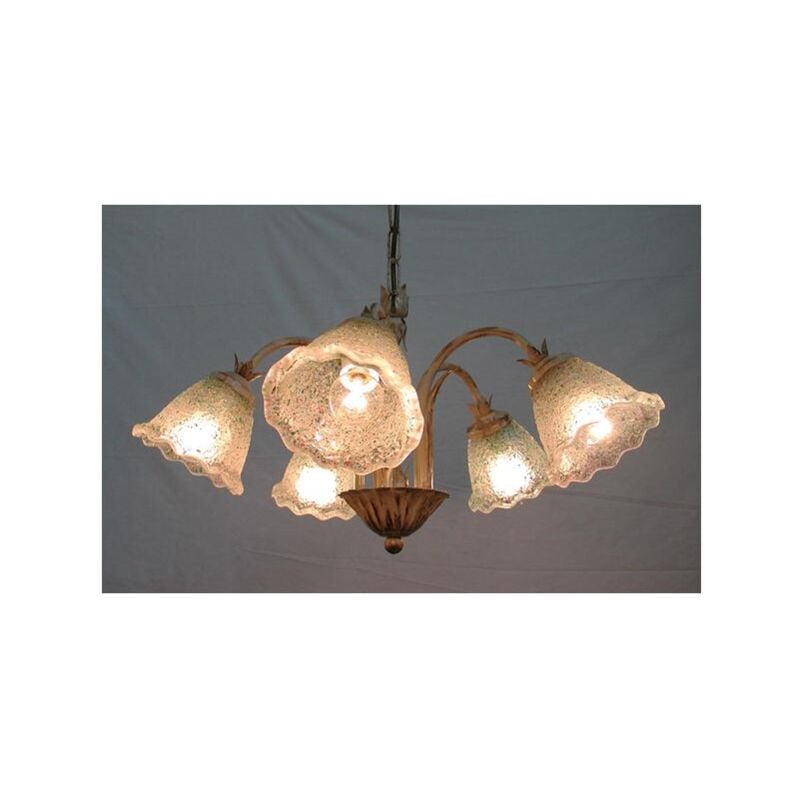 LAMPADARIO GHIAIA A 5 LUCI IN FERRO BATTUTO LAMPADE LAMPIONE APPLIQUE LANTERNA Lampadario in ferro battuto di colore Avorio Oro attacco luci E14 5X40 watt
