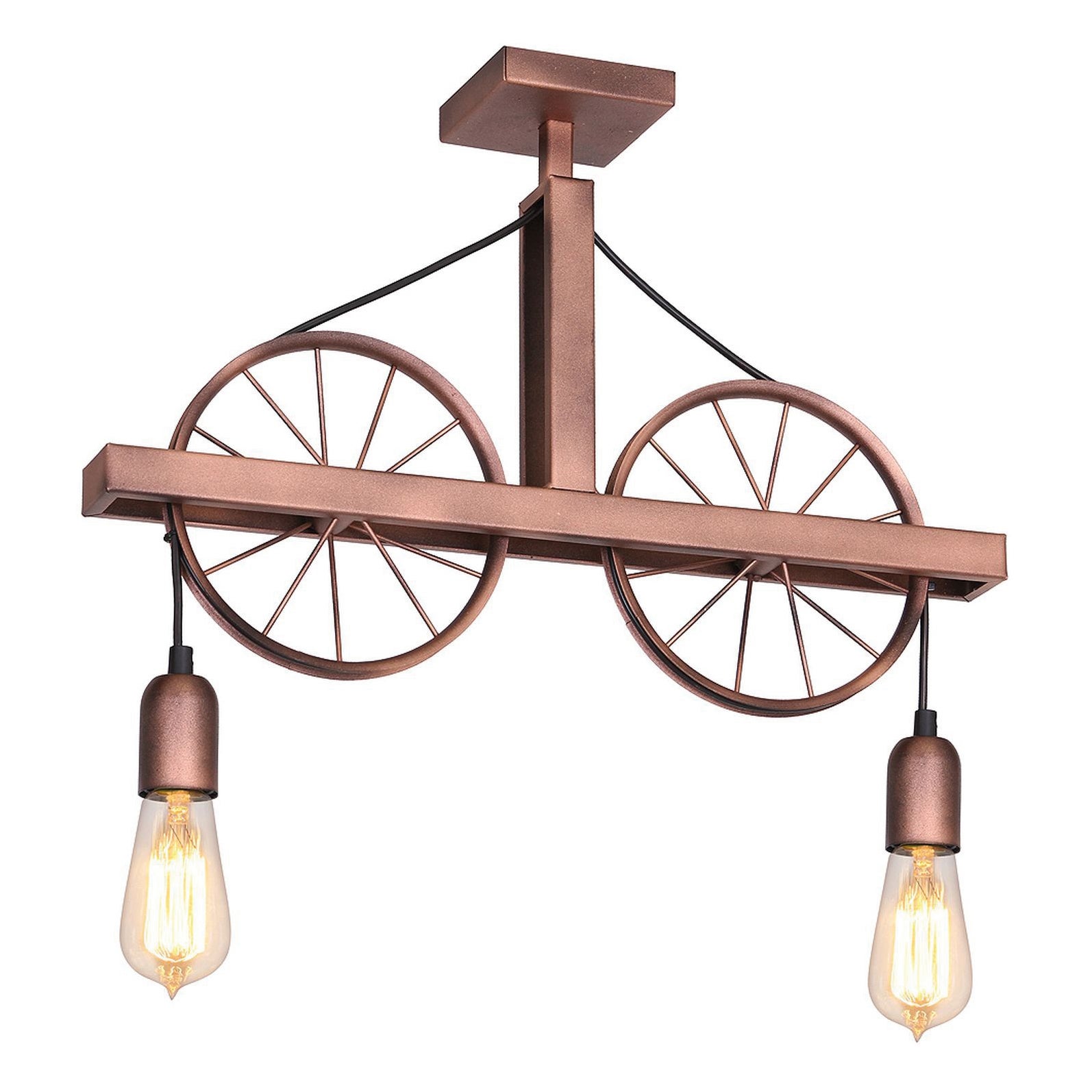 Rischiara e arreda i tuoi ambienti in perfetto stile industriale con il lampadario Ruota. Realizzato in metallo, questo lampadario a 2 luci rame è ideato per essere delicato e intramontabile. Moderno ma dal gusto vintage, elegante ma eclettico, questo stile si inserisce splendidamente in ambienti moderni e contemporanei. Si raccomanda di acquistare 2 lampadine (non fornite) con attacco E27 e una potenza massima di 60W.